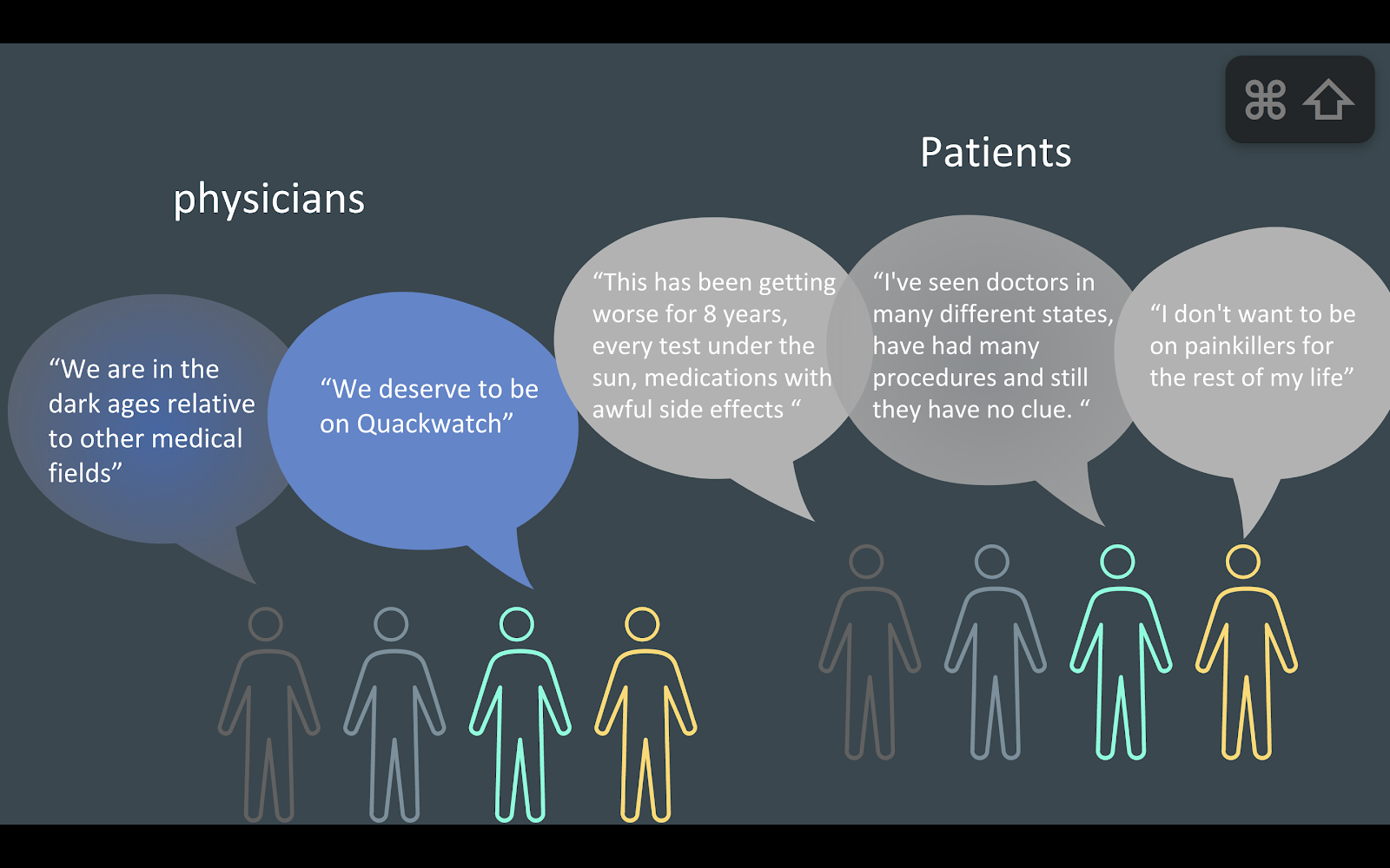 Have you ever spent a few hours of strong pain after a visit to the dentist? Maybe a whole night of migraine? A few days of strong pain after a bad injury or surgery? Now imagine having that pain continue on for months and years. Imagine going through your life with a constant sense of pain. Imagine coming to work every day with strong pain. Imagine presenting or interviewing with strong pain. Imagine waking up multiple times every night because of pain. Imagine pain always there with you — on your vacation, kid’s birthday, long business trip, when you drive, when you kiss, — e-v-e-r-y day for the rest of your life. That’s the intimate relationship I was referring to. That’s the life of people with chronic pain.