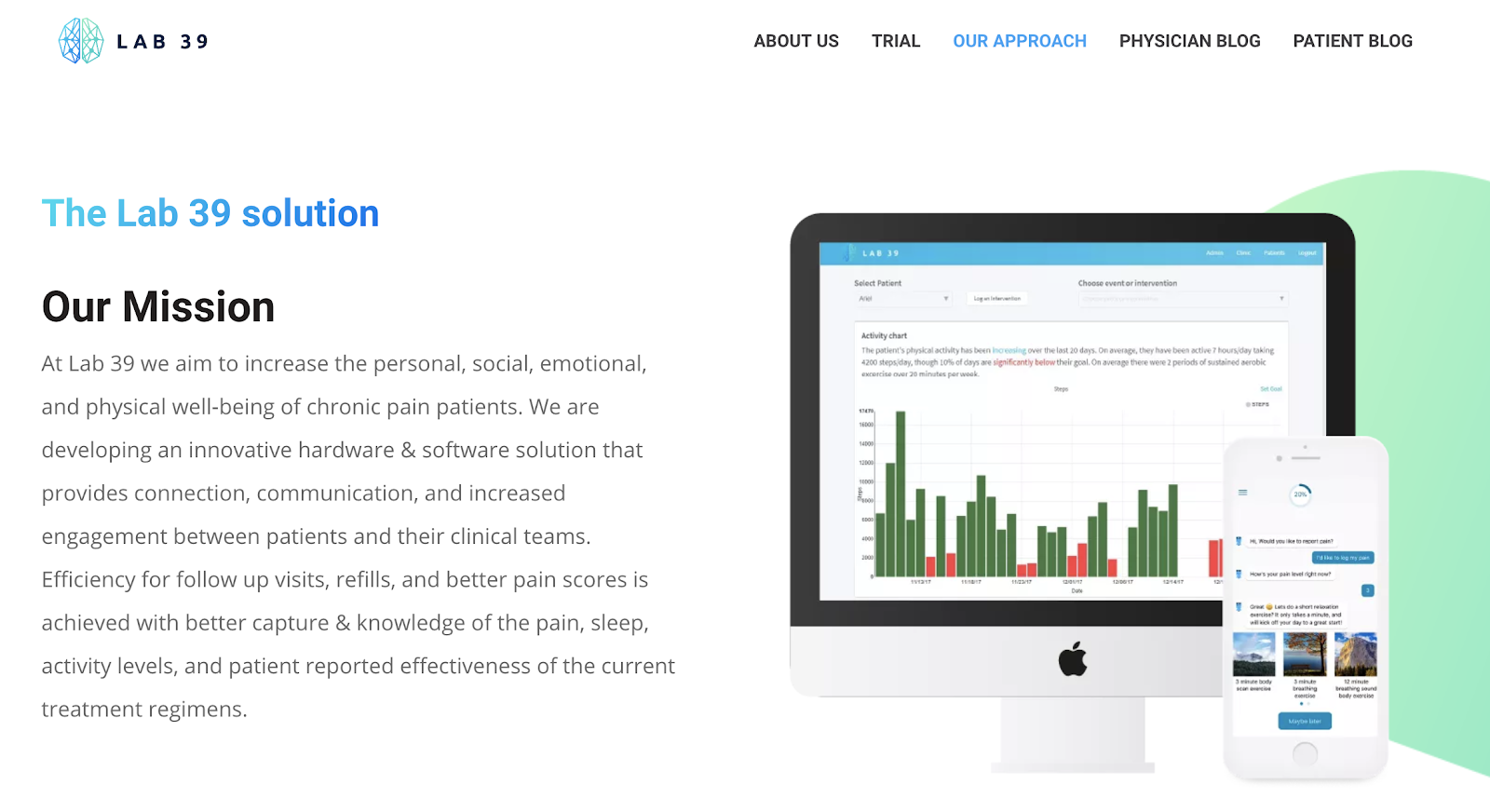 Patients notoriously report inaccurately in simple questionnaires completed just prior to brief clinical interactions. The critical data points that pain management care is based on, namely Functionality, Activity, Sleep and Pain all reside in our short-term memory (lucky for us…). We are simply not designed to know ourselves in the way our pain physician needs. He founded a start-up to tackle this critical mission — lab39.com.